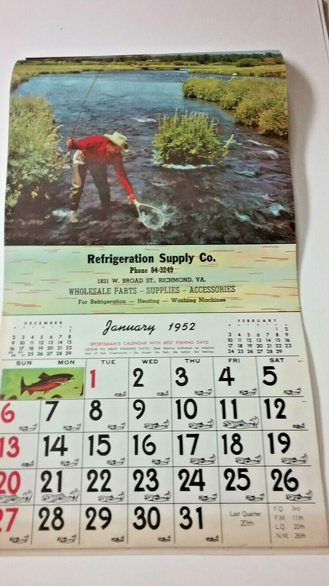 VINTAGE SPORTSMAN CALENDAR,RICHMOND VA 1952 | eBay